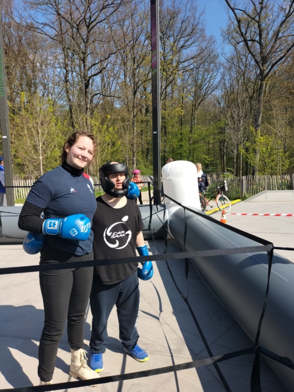 L’Intégrathlon a également accueilli plusieurs athlètes de haut niveau, notamment Mehdi Frère, Djelika Diallo et Grace Stéphanie Okemba (vice-championne olympique en Rugby à 7), ainsi que plusieurs autres athlètes de la team sport du CROS Île-de-France : Alexandra Jupiter, ex-joueuse professionnelle de volley-ball, et les deux boxeurs médaillés Thaïs Larché et Ibrahim Konaté. Leur présence a permis de valoriser les valeurs de l’inclusion et de la diversité dans le sport. Le CROS Île-de-France est intervenu sur les 4 pôles dans le but d’accompagner ses athlètes mais aussi d’animer des ateliers de sensibilisation au handicap et sport santé.