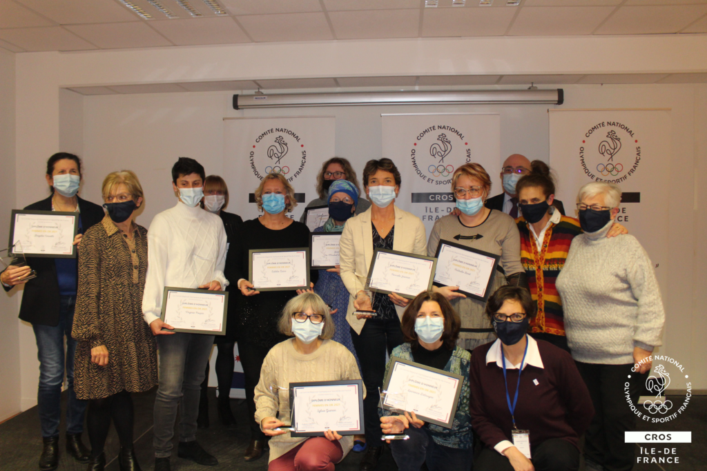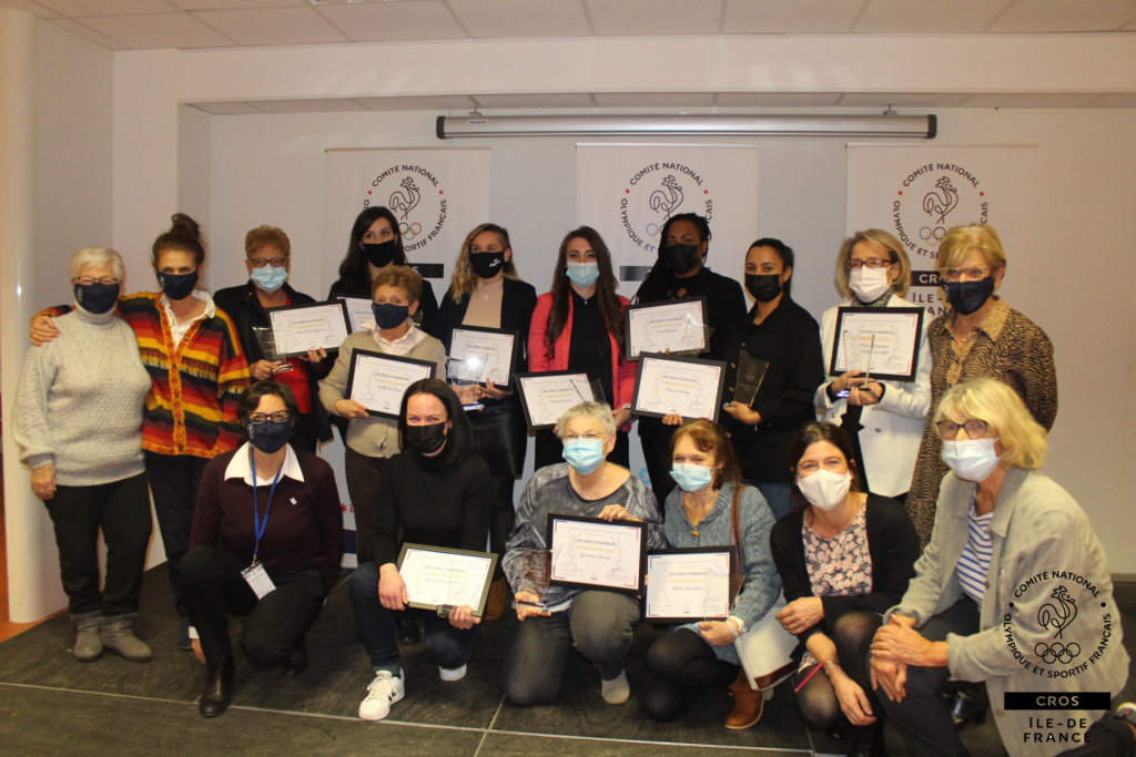 Jeudi 9 décembre 2021 s’est tenue la huitième cérémonie de remise des Trophées « Femmes en Or » au Centre d’Information et de Documentation pour la Jeunesse – CIDJ – Île-de-France où 32 femmes, bénévoles, arbitres, entraineures, dirigeantes et formatrices, se sont vu récompensées pour leur engagement et leur implication au service du mouvement sportif francilien.