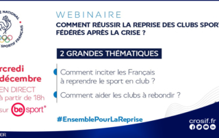 Source CNSOF Le webinaire « Comment réussir la reprise des clubs sportifs fédérés après la crise ? » organisé par le Comité national olympique et sportif français s'est déroulé le 16 décembre en direct sur Be Sport. 3 000 personnes étaient connectées, une audience qui témoigne de la mobilisation entière du mouvement sportif et des nombreuses attentes auxquelles a pu répondre ce webinaire Replay Ce temps d'échange riche entre Denis Masseglia, Président du CNOSF, Marie-Amélie Le Fur, Présidente du Comité paralympique et sportif français (CPSF), Frédéric Sanaur, Directeur Général de l'Agence nationale du Sport (AnS), David [...]