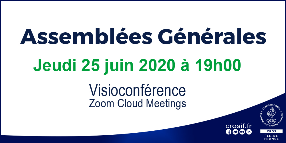 En raison de la pandémie liée à la Covid-19, le Conseil d’Administration du CROS Île-de-France a reporté l’Assemblée Générale Ordinaire et l’Assemblée Générale Extraordinaire initialement prévues le 31 mars 2020 au CNOSF, au jeudi 25 juin 2020 en visioconférence.