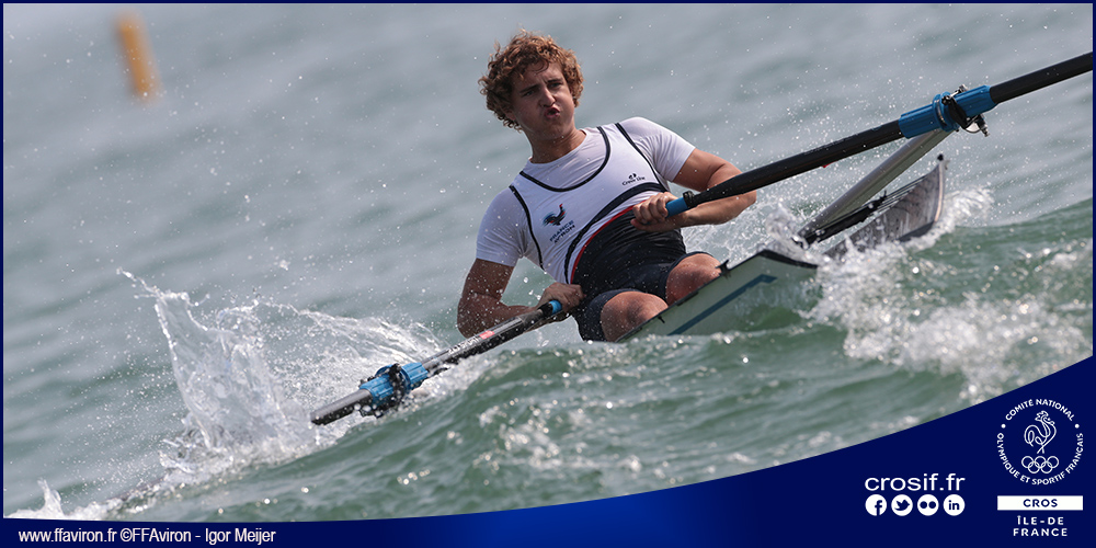 Chez les hommes, le français a écarté le concurrent italien en quart de finale pour rejoindre l’Espagnol Miramon, favori de l’épreuve, en demi-finale. Cette fois-ci la marche était trop haute pour le jeune français qui a dû laisser son adversaire filer vers la finale A. Pour monter sur le podium du solo homme, Ivan Bové a affronté le rameur de Hong-Kong. Grâce notamment à un très bon départ, le rameur de Meulan-les Mureaux a pu maîtriser son sujet pour atteindre la plage en premier. Novice en mer, le français décroche ainsi une belle médaille de bronze pour sa première compétition internationale !