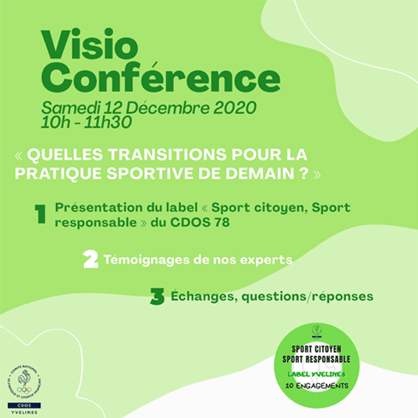 Le samedi 12 décembre de 10h à 11h30, le CDOS 78 proposera une visioconférence sur la transition de l’événementiel sportif à la suite de la crise sanitaire actuelle.