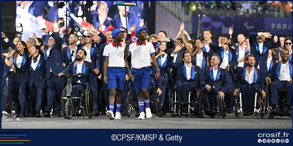 Ce mercredi 28 août marquait la date de la cérémonie d’ouverture des Jeux Paralympiques de Paris 2024 se déroulant sur la place de la Concorde. Une cérémonie qui se voulait inclusive et spectaculaire et qui s’est déroulée comme pour les JO pour la 1ère fois en dehors d’un stade. Une grande parade populaire ou ont défilé les 168 délégations qui représentent 4400 athlètes avec pour la délégation française 237 membres emmenés par nos portes drapeaux Nantenin Keita (Para-athlétisme) et Alexis Hanquinquant (Para-triathlon) et Yvan Wouandji comme ouvreur, lui le champion de cécifoot et ambassadeur du CROS Île-de-France.