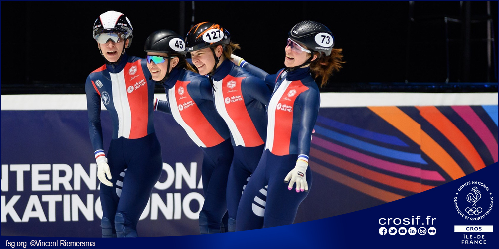 Après avoir remporté il y a quelques semaines un titre européen historique en Pologne, le relais féminin de l’équipe de France de short-track termine la saison en beauté en devenant vice-championne du Monde le 7 mars 2021 à Dordrecht.