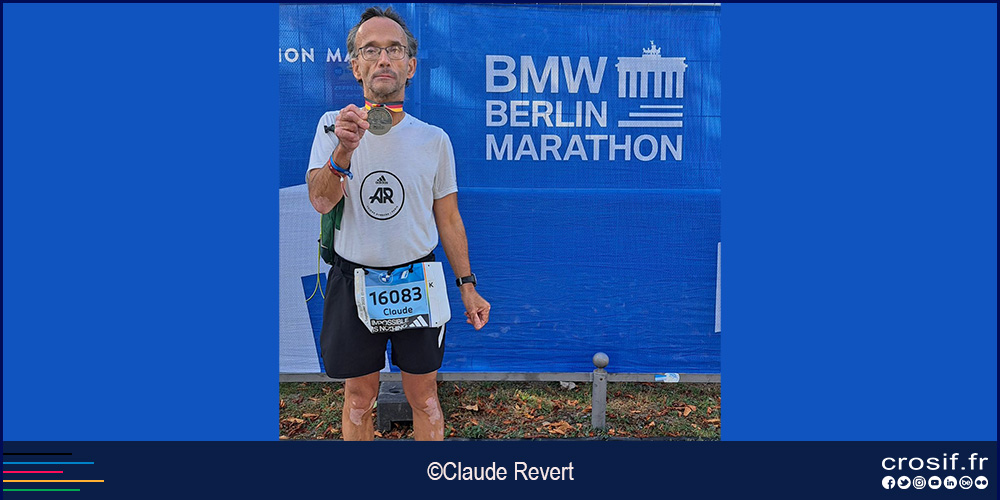 Le week-end dernier, il relève un nouveau défi qui était de terminer le marathon de Berlin. C’est chose faite, puisque malgré des difficultés rencontrées liées à sa maladie, Claude est venu à bout de ces 43,2km en 5 heures et 42 min et 45 secondes.