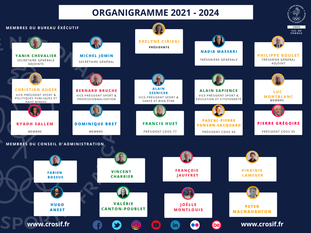 Le Conseil d’administration du CROS Île-de-France est composé de :