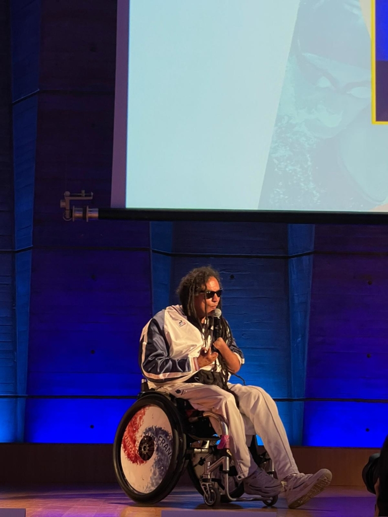Ryadh Sallem, membre du Conseil d’Administration du CROS Île-de-France, grand champion paralympique et figure emblématique du handisport en France, a été le parrain de ce congrès. Son intervention pour ouvrir la journée a donné le ton : avec sa double casquette de sportif de haut niveau et de fondateur de l’association CAPSAAA, Ryadh Sallem a partagé sa vision positive du handicap, inspirée par son propre parcours. Tout au long de la journée, il a participé activement aux différentes tables rondes, apportant son expérience et son engagement pour une meilleure inclusion des personnes en situation de handicap.