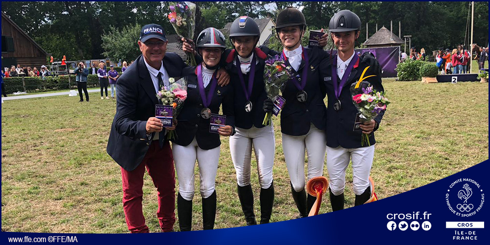 Les bleuets ont à nouveau prouvé leur bonne forme lors du test final du CSO. Sur les quatre cartouches de l’équipe, deux réalisent le sans-faute : Romain Sans et Anouk Canteloup. Victor Leveque sort de piste avec 4 points suite à une barre tombée sur le dernier obstacle du parcours. Morgane Euriat en pole position après les deux premiers tests porte alors toute la pression de l’équipe de France sur ses épaules, qui serait en or si elle réalise le parcours parfait. Morgane voit son score s’alourdir de 12 points suite à un parcours fautif qui fait reculer la France à la deuxième place. Les jeunes cavaliers auront réalisé de très belles prestations en classant les 4 cavaliers de l’équipe dans le top ten. Romain Sans, Morgan Euriat, Anouk Canteloup et Victor Leveque sont respectivement 5, 6 et 9, et 10èmes au classement individuel. Par équipe, ils décrochent la médaille d’argent.