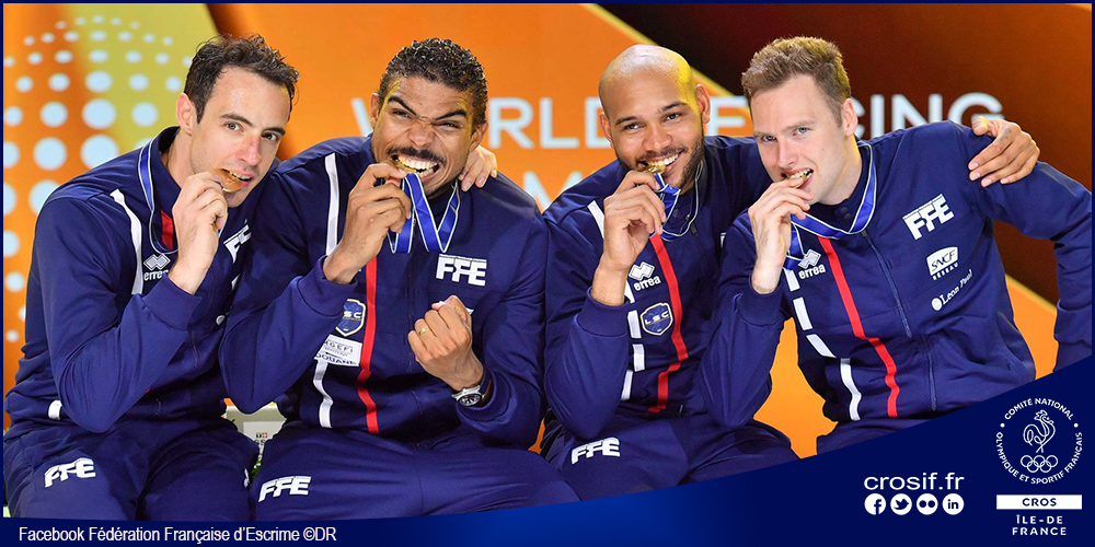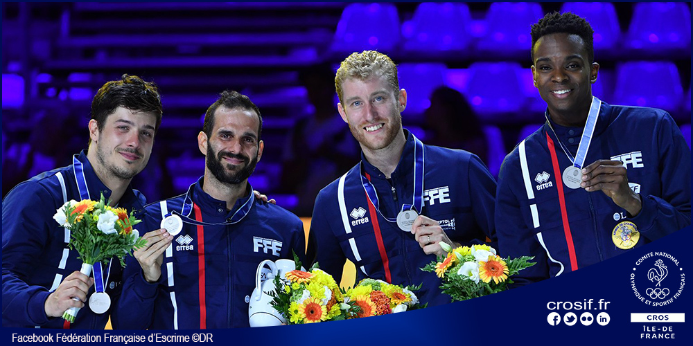 Félicitation à Enzo Lefort (CE Melun Val de Seine (77), Erwann Le Péchoux, Julien Mertine (CE Rueil Malmaison, 92) et Maxime Pauty (Mousquetaires d’Issy-les-Moulineaux, 92); Vice-champions du Monde de Fleuret par équipe.