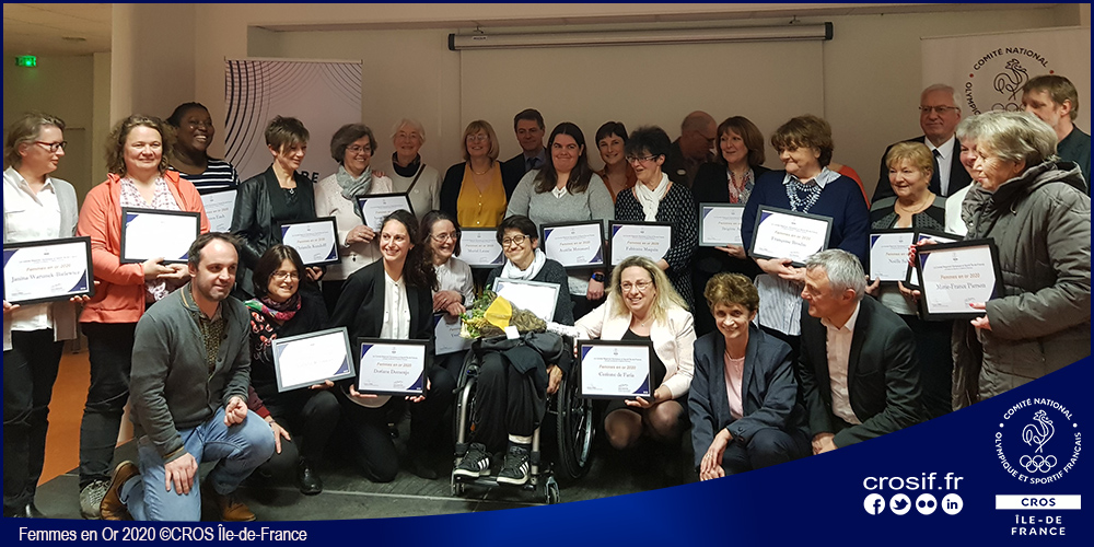 La septième cérémonie des trophées « Femmes en Or » a ensuite été déclarée ouverte par Evelyne Ciriegi, Présidente du CROS Île-de-France. Ainsi, 23 trophées dont 1 coup de cœur du jury furent remis aux franciliennes méritantes œuvrant pour le mouvement sportif en tant que bénévole, dirigeante, arbitre ou entraîneur.