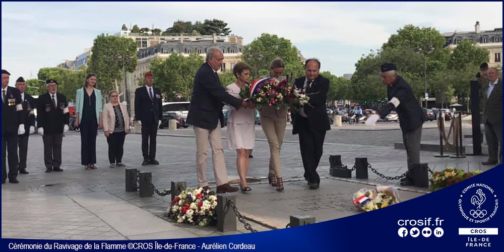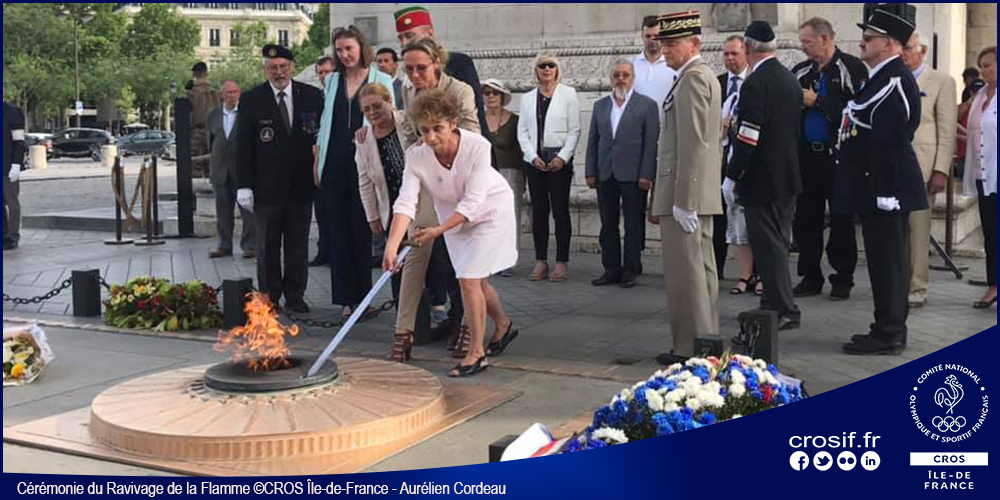 Le CROS Île-de-France, membre du Comité de la Flamme, a eu le privilège de présider la cérémonie du ravivage de la Flamme sous l’Arc de Triomphe, Flamme de la Nation, le mercredi 10 juillet.