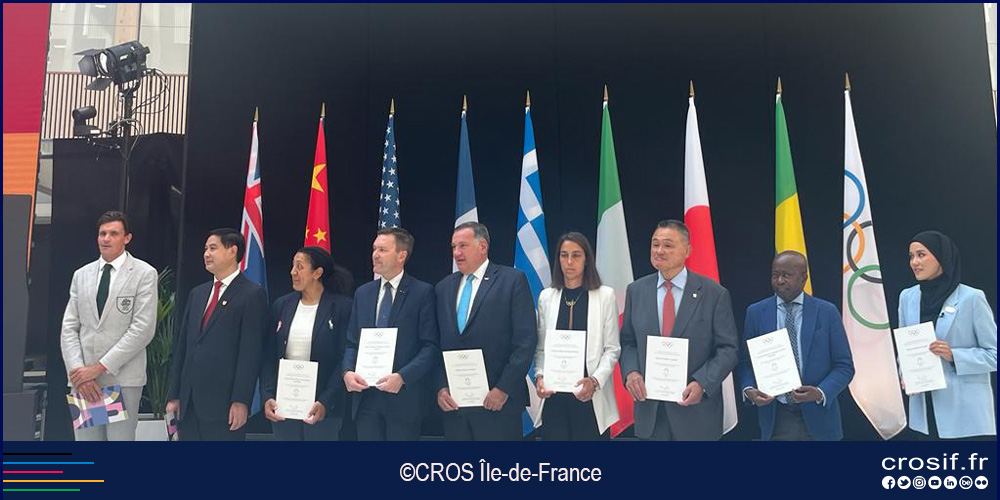 Evelyne Ciriegi, Présidente du CROS Île-de-France était présente en tant que membre du Conseil d’administration du COJO pour marquer l’engagement du mouvement sportif francilien pour la construction d’un héritage commun. Au total, ce sont 203 CNO qui sont invités à la compétition sportive planétaire la plus suivie au monde.