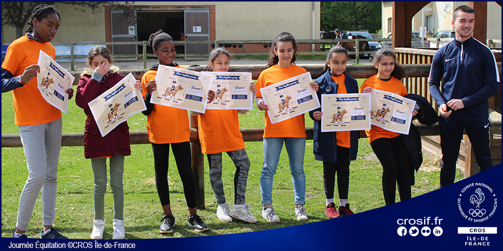 À l’issue de la journée, un diplôme a été remis aux participants sur lequel une séance gratuite de découverte est proposée dans l’un des clubs partenaires du CREIF proche du domicile de chacun. Cela dans le but de les encourager à prolonger l’exploration de l’activité et leur donner la possibilité de poursuivre l’équitation de manière régulière et encadrée.