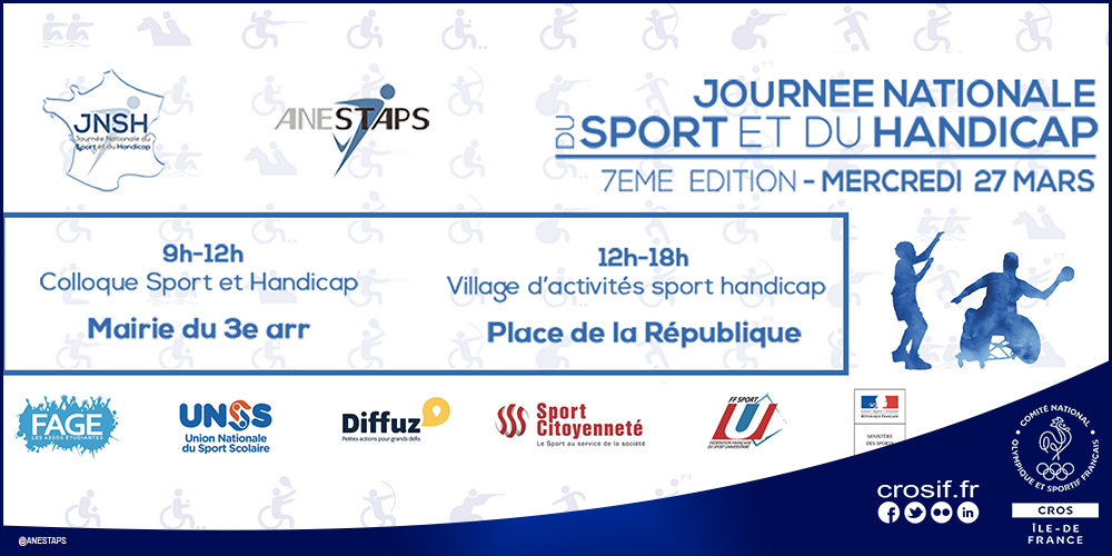 L’édition parisienne commencera par un colloque dans la salle des fêtes de la Mairie du 3ème arrondissement sur le thème « Comment développer la pratique para-sportive et favoriser l’inclusion ? » organisé en collaboration avec Sport et Citoyenneté, modéré par Charles Rozoy, collaborateur de la Ministre des Sports sur le sport handicap et avec la participation de Marie-Amélie le Fur, Présidente du Comité Paralympique et Sportif Français, Lydie Cohen, membre du comité scientifique Sport et Citoyenneté, Evelyne Ciriegi, Présidente du CROS Île-de- France, Julian Japper, Directeur Général de Sport et Citoyenneté et Mathias Goasmat, Président de l’ANESTAPS.