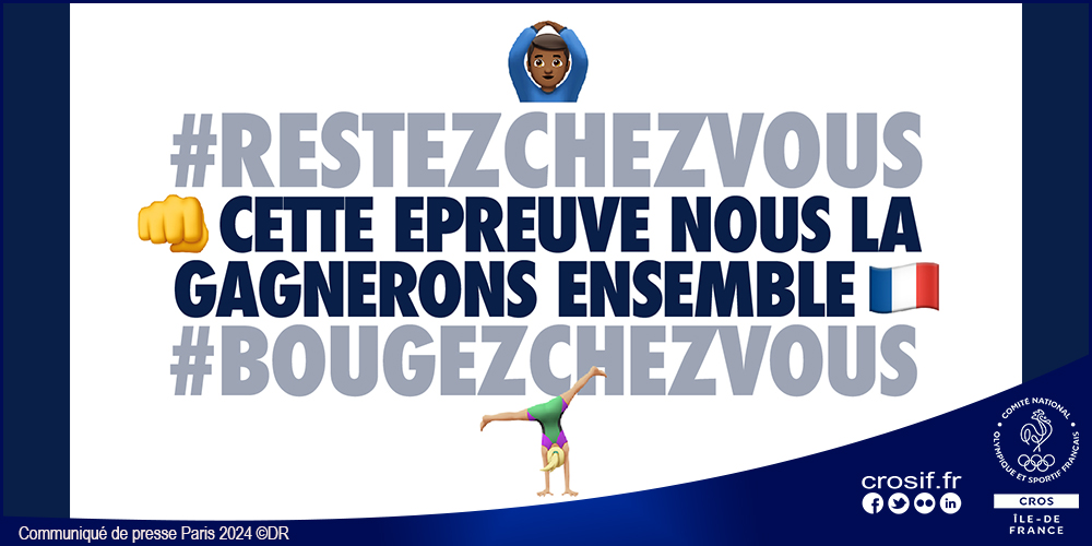 Convaincu que cette épreuve, nous la gagnerons ensemble l’ensemble du Mouvement Olympique, Paralympique et sportif Français relaie l’opération digitale #BougezChezVous pour inciter les Français à rester chez eux tout en restant actifs.
