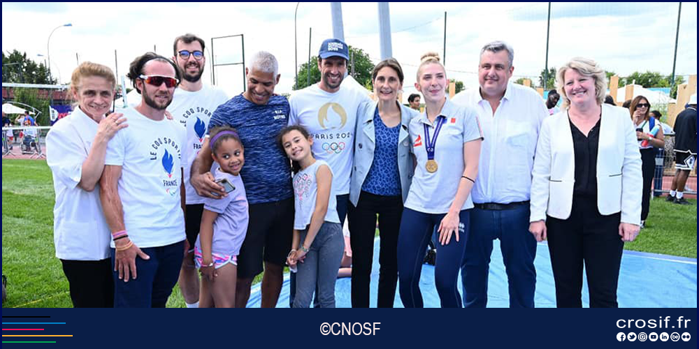 Dimanche 26 juin, aux abords du Stade de France transformés en immense terrain de jeux à ciel ouvert, plusieurs dizaines de milliers de personnes sont venues en famille et entre amis profiter de nombreuses initiations et démonstrations sportives et artistiques. Sur 40 000 m2 de pistes et terrains de sport aménagés pour l’occasion, petits et grands ont pu venir découvrir, pratiquer et admirer plus de 30 sports olympiques au programme des Jeux de Paris 2024 (entre autres, escrime, aviron, natation, voile, breaking, badminton, tennis de table) et quelques sports paralympiques (volley assis, basket fauteuil), en présence de Tony Estanguet, Président de Paris 2024, Amélie Oudéa-Castéra, Ministre des Sports et des Jeux Olympiques et Paralympiques, Brigitte Henriques, Présidente du Comité National Olympique et Sportif Français, Anne Hidalgo, Maire de Paris, Valérie Pécresse, Présidente de la Région Île-de-France, Stéphane Troussel, Président du Département de la Seine-Saint-Denis, Philippe Sturm, Président du CDOS 93, Matthieu Hanotin, président de Plaine Commune, maire de Saint-Denis et Evelyne Ciriegi, Présidente du CROS Île-de-France.