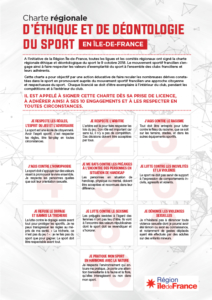 Nous voulons aussi agir avec force et détermination par des actions volontaristes pour combattre toutes les dérives dans le sport et en priorité, celles qui touchent les violences sexuelles, l’homophobie et la radicalisation, conformément à la Charte régionale d’éthique et de déontologie du sport en Île-de-France qui doit s’appliquer dans tous les clubs franciliens et qui est valorisé dans ce spot.
