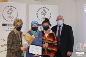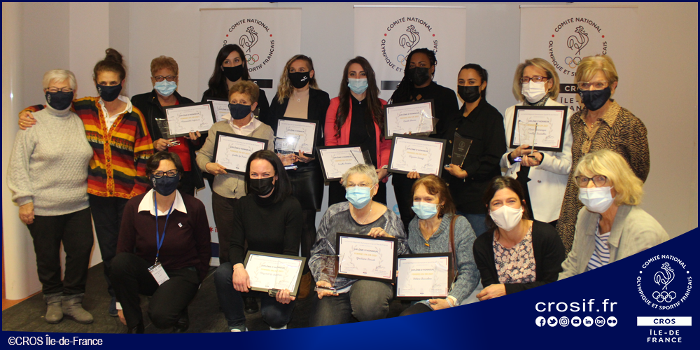 Jeudi 9 décembre 2021 s’est tenue la huitième cérémonie de remise des Trophées « Femmes en Or » au Centre d’Information et de Documentation pour la Jeunesse – CIDJ – Île-de-France où 32 femmes, bénévoles, arbitres, entraineures, dirigeantes et formatrices, se sont vu récompensées pour leur engagement et leur implication au service du mouvement sportif francilien.