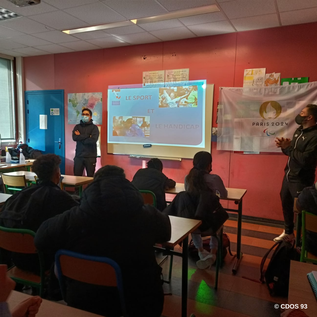 En Seine-et-Marne, le CDOS est intervenu au sein d’un collège de Moissy-Cramayel sous la forme d’une exposition qu’il a conçu sur le Paralympisme, sans compter divers ateliers pour initier les élèves au handicap en les mettant en situation, par exemple en les faisant jouer au basket fauteuil. Le CDOS a, en outre, porté la bonne parole concernant le sport féminin, la non-discrimination entre les sexes et la lutte contre les violences.