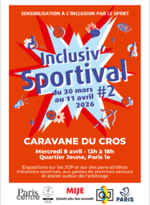 La caravane du CROS Île-de-France a fait étape mercredi 8 avril 2026 sur la 2ᵉ édition de l’Inclusiv’Sportival organisé par l’association MIJE dans le prolongement de la Semaine Olympique et Paralympique, qui s’est tenu au Quartier Jeunes, situé dans le 1er arrondissement de Paris.