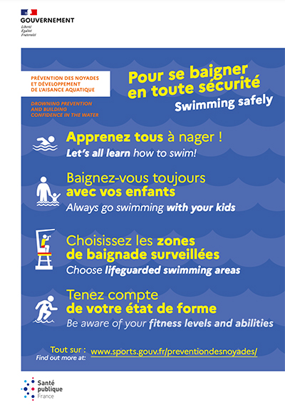 Le ministère des Sports et des Jeux Olympiques et Paralympiques déploiera à nouveau cet été des messages de prévention des noyades avec :
