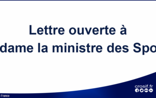 Lettre ouverte à Madame la ministre des Sports