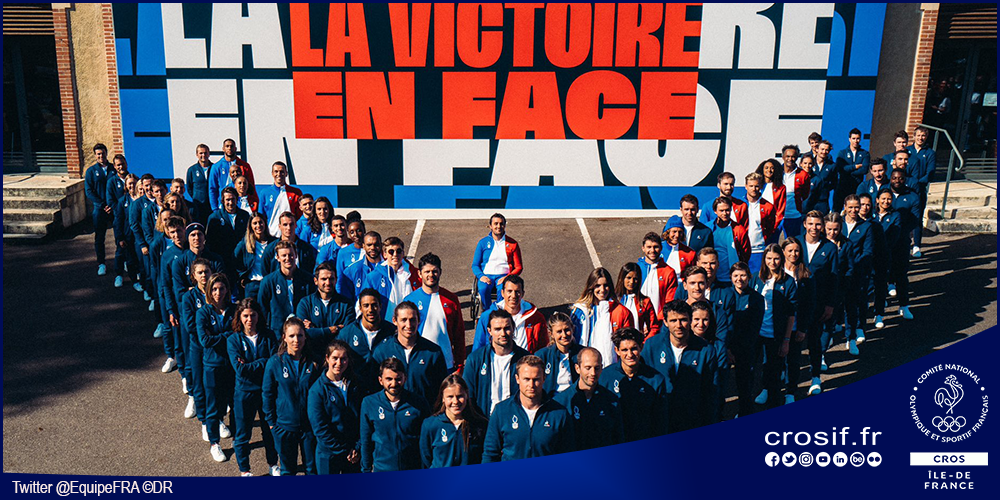 Cet emblème est le fruit d’un travail collégial associant Paris 2024 (le comité d’organisation étant détenteur de la marque Équipe de France durant l’intégralité de l’Olympiade Paris 2024), le Comité National Olympique et Sportif Français (CNOSF) et le Comité Paralympique et Sportif Français (CPSF), avec le soutien du Ministère de l’Education nationale, de la Jeunesse et des Sports et de l’Agence nationale du sport. Inspiré du leitmotiv « la victoire en face », il en est l’incarnation.