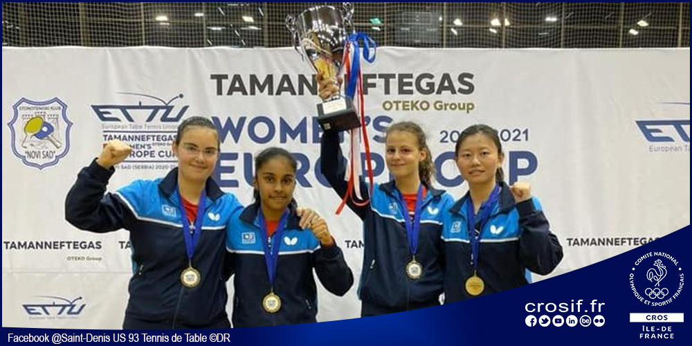 Ce 9 mai à Novi Sad (Serbie), pour la première fois de son histoire, Saint-Denis US 93 Tennis de Table décroche la Coupe d’Europe des clubs ETTU dames grâce à sa jeune équipe composée de Prithika PAVADE (16 ans), Camille LUTZ (18 ans), Leili MOSTAFAVI (21 ans) et leur coach, Qiwen XIAO.