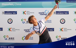 Source FF Aviron Après une médaille d'argent pour le double mixte le samedi, se sont les courses solo qui ont eu lieu dimanche 27 octobre, dernier jour de compétition. Sur la plage de Shenzhen, Ivan Bové chez les hommes, et Diane Delalleau ont eu fort à faire, mais la délégation française a réussi à décrocher une nouvelle médaille lors de ces Mondiaux de Beach Rowing. Après leurs parcours chronométrés du début de week-end, les [...]