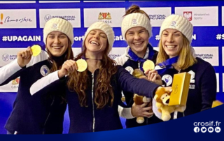 Source Sports de Glace IDF Dimanche 24 janvier, l’équipe de France féminine de short-track a été sacrée Championne d’Europe en relais : une première historique ! Tifany Huot-Marchand, Aurélie Monvoisin (Union sportive fontenaysienne - 94), Aurélie Lévêque, Gwendoline Daudet (Union sportive fontenaysienne - 94) et Cloé Ollivier (remplaçante) ont décroché dimanche dernier, à Gdansk (Pologne), le titre de Championnes d’Europe sur le relais féminin (3 000m). C’est le premier titre de l’histoire pour une [...]