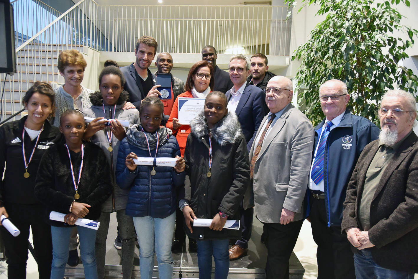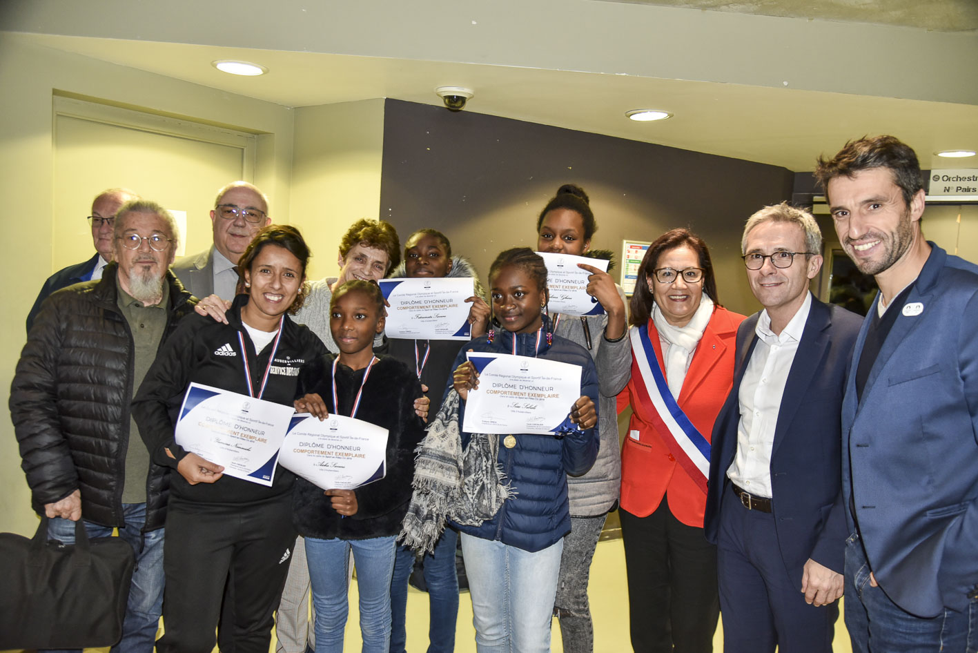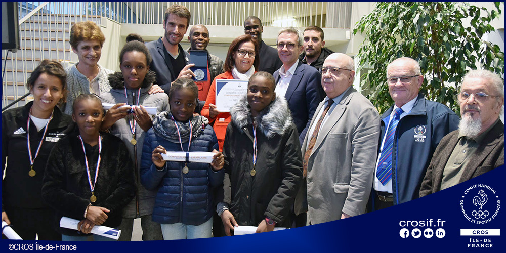 Le diplôme du bon comportement et la médaille du CROS Île-de-France ont été remis en présence de Meriem Derkaoui – Maire d’Aubervilliers, Stéphane Troussel – Président du Conseil Départemental de la Seine-Saint-Denis, Tony Estanguet – Président de Paris 2024, et Evelyne Ciriegi – Présidente du CROS Île-de-France accompagnée de Michel Jomin – Trésorier Général Adjoint, Alain Sapience – Délégué spécial et d’Alain Millon – membre de la commission « Femmes, Jeunes et Sports ».