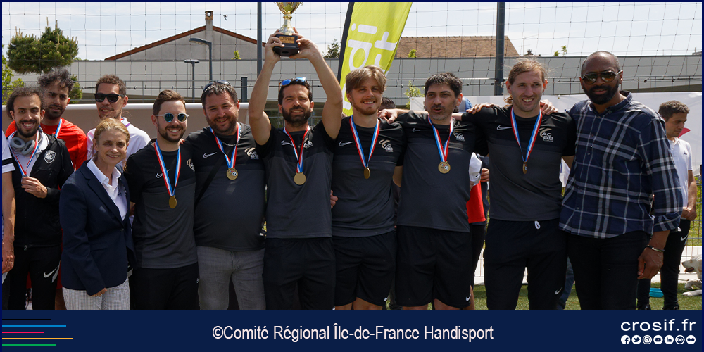 A Bondy, municipalité qui a vu grandir Kylian Mbappé, la Commission nationale de cécifoot et le Comité régional handisport ont, quant à eux, organisé la Coupe de France de cécifoot les 14 et 15 mai. Une épreuve à laquelle a assisté Evelyne Ciriegi, la Présidente du CROS. Elle a réuni plus de vingt équipes et deux-cents amoureux du ballon rond ainsi que leurs staffs. Parmi eux, des joueurs qui en ont décousu aux Jeux paralympiques de Tokyo et d’autres qui ont été médaillés d’argent à ceux de Londres tels Hakim Arezki et Yvan Wouandji. Tous deux ont été vice-champions paralympiques en 2012 et sont respectivement Président du Comité départemental handisport de Seine-Saint-Denis et ambassadeur du CROS. Le spectacle s’adressait à tous puisque, comme le rappelaient ses promoteurs, l’objectif était que « toute personne en situation de déficience visuelle puisse s’y retrouver mais également de sensibiliser le mouvement sportif et associatif valide ». Mission accomplie, se félicite Olivier Hélan-Chapel, Président du Comité régional handisport. « Cela a été une très belle compétition. Tout le monde en est reparti heureux et satisfait. C’est une pratique qui est assez extraordinaire. Regarder ces athlètes déambuler avec un ballon qu’ils ne voient pas et qu’ils ne font qu’entendre mais qu’ils ont quasiment collé au pied est tout simplement hallucinant. A la clef, une qualité de jeu impressionnante. De nombreux clubs franciliens ne proposent pas de cécifoot. Non pas parce qu’ils n’en ont pas envie mais parce qu’ils ne disposent pas d’un encadrement spécifique. L’objectif est d’en augmenter le nombre, ce qui implique, au préalable, d’attirer des jeunes qui seraient séduits par cette pratique. »