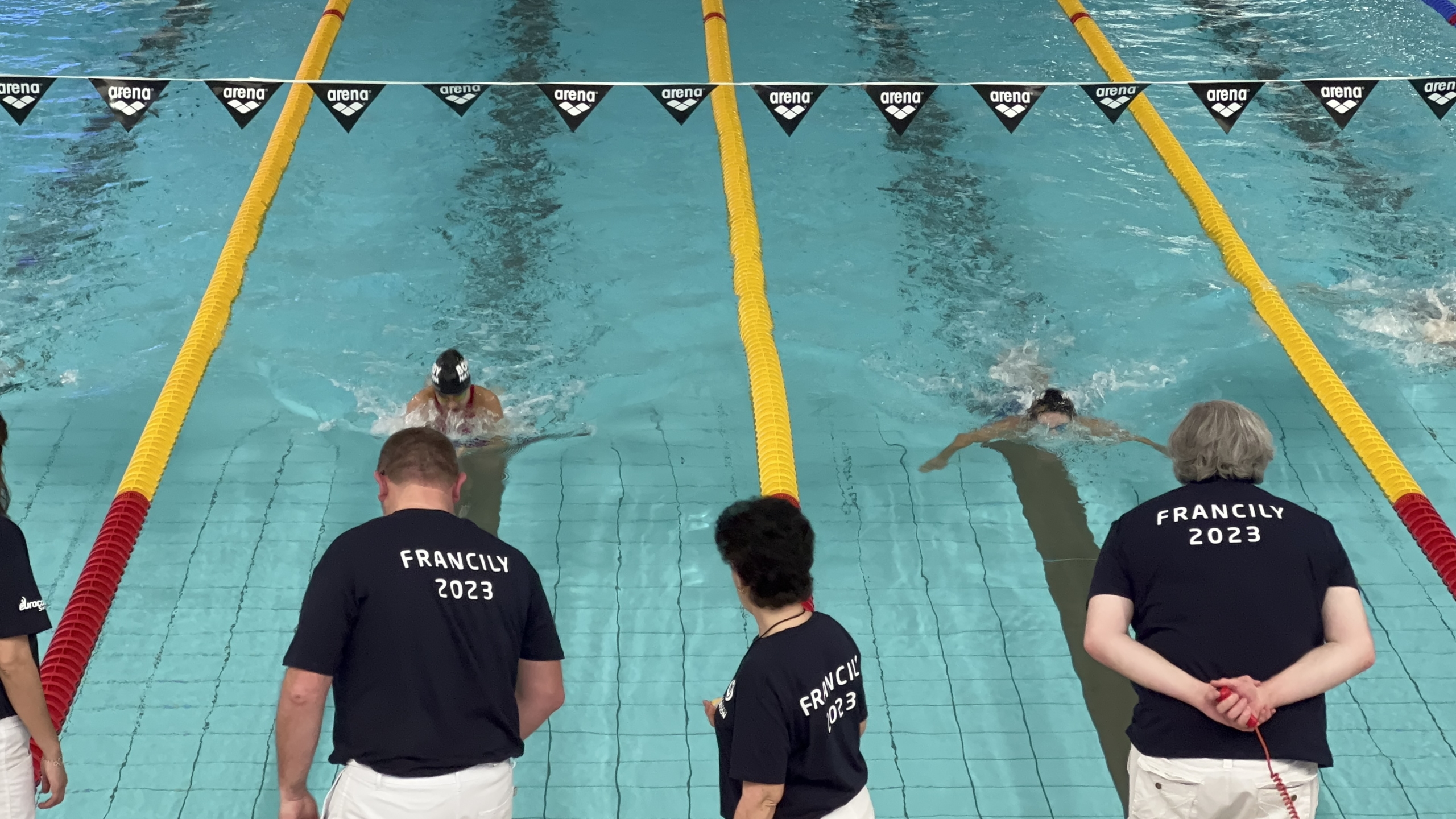 Evelyne Ciriegi, la Présidente du Comité Régional Olympique et Sportif Île-de-France était présente au bord du bassin pour encourager et donner de la force à nos franciliennes et franciliens en lice aux côtés de :