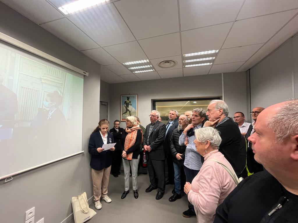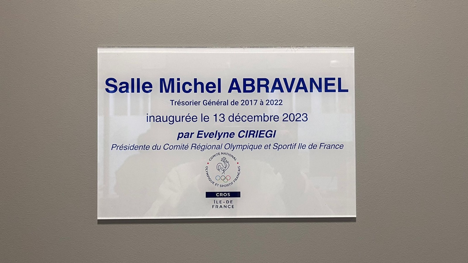 C’est la raison pour laquelle le CROS Île-de-France a décidé de réserver une salle au nom de Michel Abravanel avec le dépôt d’une plaque. L’inauguration a eu lieu au siège du CROS ce mercredi 13 décembre, date anniversaire de son décès. Autour de la Présidente Evelyne Ciriegi, son épouse et beaucoup d’amis et de sympathisants s’étaient déplacés en souvenir de Michel pour institutionnaliser « La salle Michel Abravanel ».