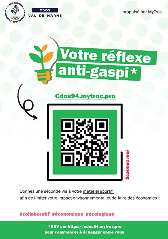 Le CDOS 94 a le plaisir de vous présenter la plateforme MyTroc, le nouvel outil permettant de participer à une action concrète de développement durable en s’échangeant du matériel et des équipements d’occasion !
