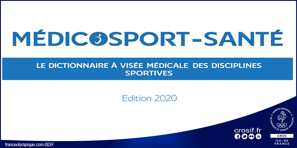 La commission médicale du CNOSF, en coopération étroite avec la Société Française de Médecine de l’Exercice et du Sport (SFMES), publie l’édition 2020 du Médicosport-santé, dictionnaire à visée médicale des disciplines sportives.