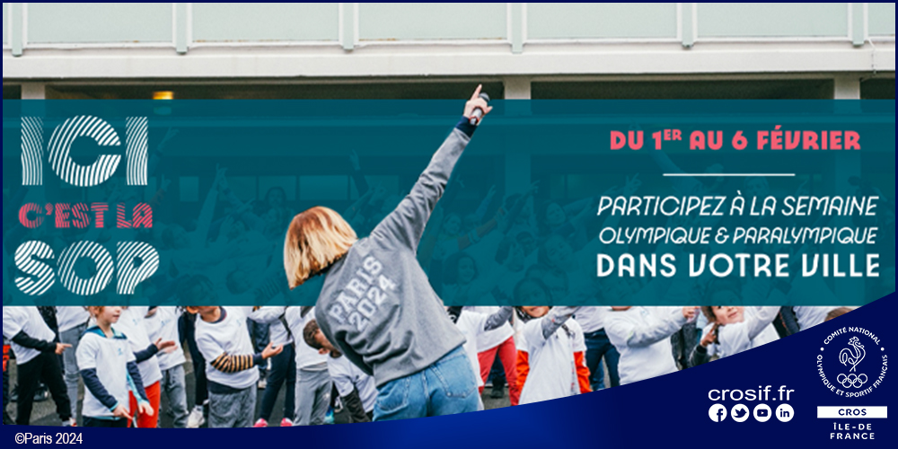 Le CROS Île-de-France, Terre de Jeux 2024, fait vivre les Jeux de Paris 2024, à tous, dès maintenant, en leur permettant de Bouger Plus. À ce titre, les équipes du CROS seront mobilisées du 1er au 6 février 2021 pour la 5ème édition de la SOP.