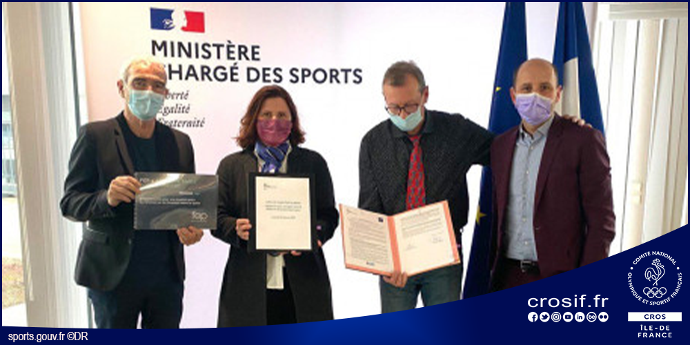 Roxana Maracineanu, ministre déléguée chargée des Sports, et José Ruiz, président de la Fédération des entraineurs professionnels (FEP) ont signé jeudi 27 janvier 2022, l’Appel de Paris pour le Sport qui avait été lancé par la Ministre lors du Forum génération égalité le 1er juin dernier.