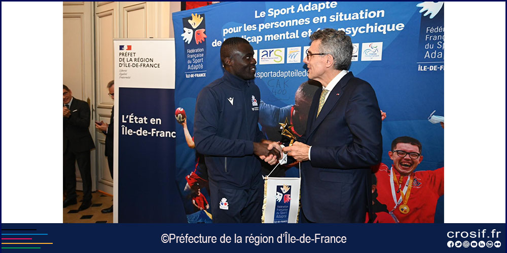 Vendredi 17 novembre se déroulait la soirée de remise des trophées des champions et championnes de Sport Adapté d’Île-de-France. Une cérémonie qui s’est tenue cette année au siège de la préfecture de la Région Île-de-France et de Paris en présence de la Présidente du CROS Île-de-France Evelyne Ciriegi, d’Annaick Morvan directrice régionale des droits des Femmes et à l’égalité entre les femmes et les hommes à la préfecture de la région Île-de-France, du Président de la Ligue Île-de-France de Sport Adapté Bruno Hennebelle qui a animé la soirée et du préfet de la Région Île-de-France et de Paris Marc Guillaume qui a ouvert cette cérémonie.