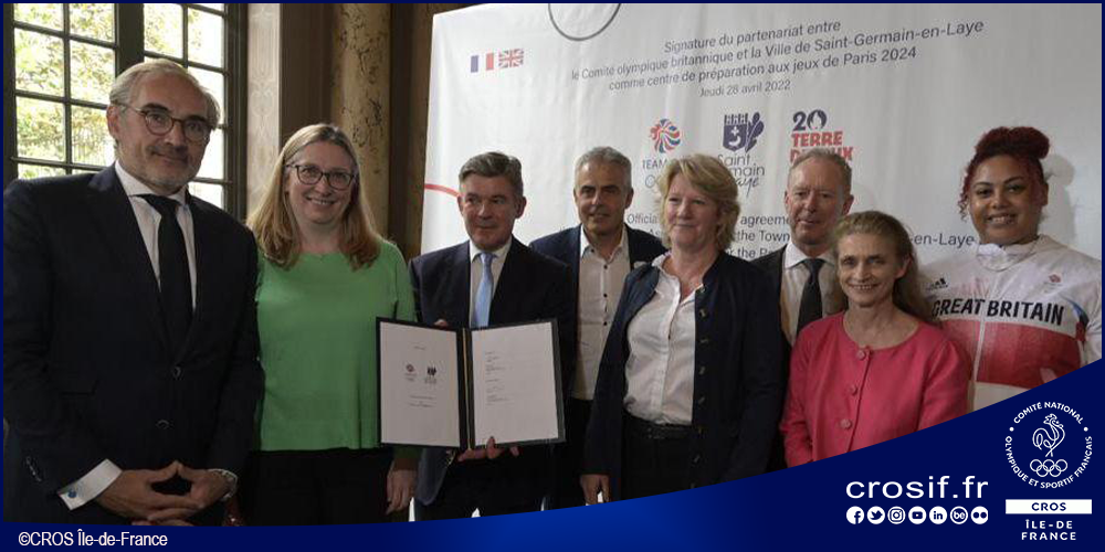 A l’approche des Jeux Olympiques et Paralympiques de Paris 2024, le mouvement sportif est mobilisé sur tous les terrains. La Présidente du Comité Régional Olympique et Sportif Île-de-France, Evelyne Ciriegi, était aux côtés de la Présidente du CNOSF Brigitte Henriques le 28 avril à Saint-Germain-en-Laye pour la signature du partenariat entre la Team GB, une des 4 meilleures délégations olympiques et la ville de Saint-Germain-en-Laye, reconnue pour la qualité de ses infrastructures de haut niveau et sa proximité avec les sites de compétition de Paris 2024 et qui sera le centre de préparation des athlètes britanniques.
