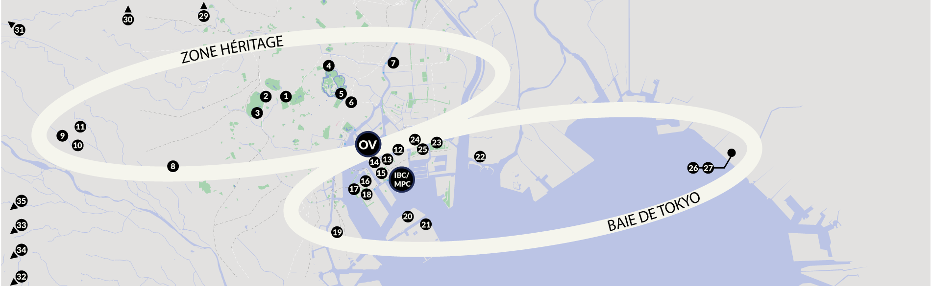 - La « Zone Héritage », où de nombreux sites ont déjà servi pour les olympiades de 1964,