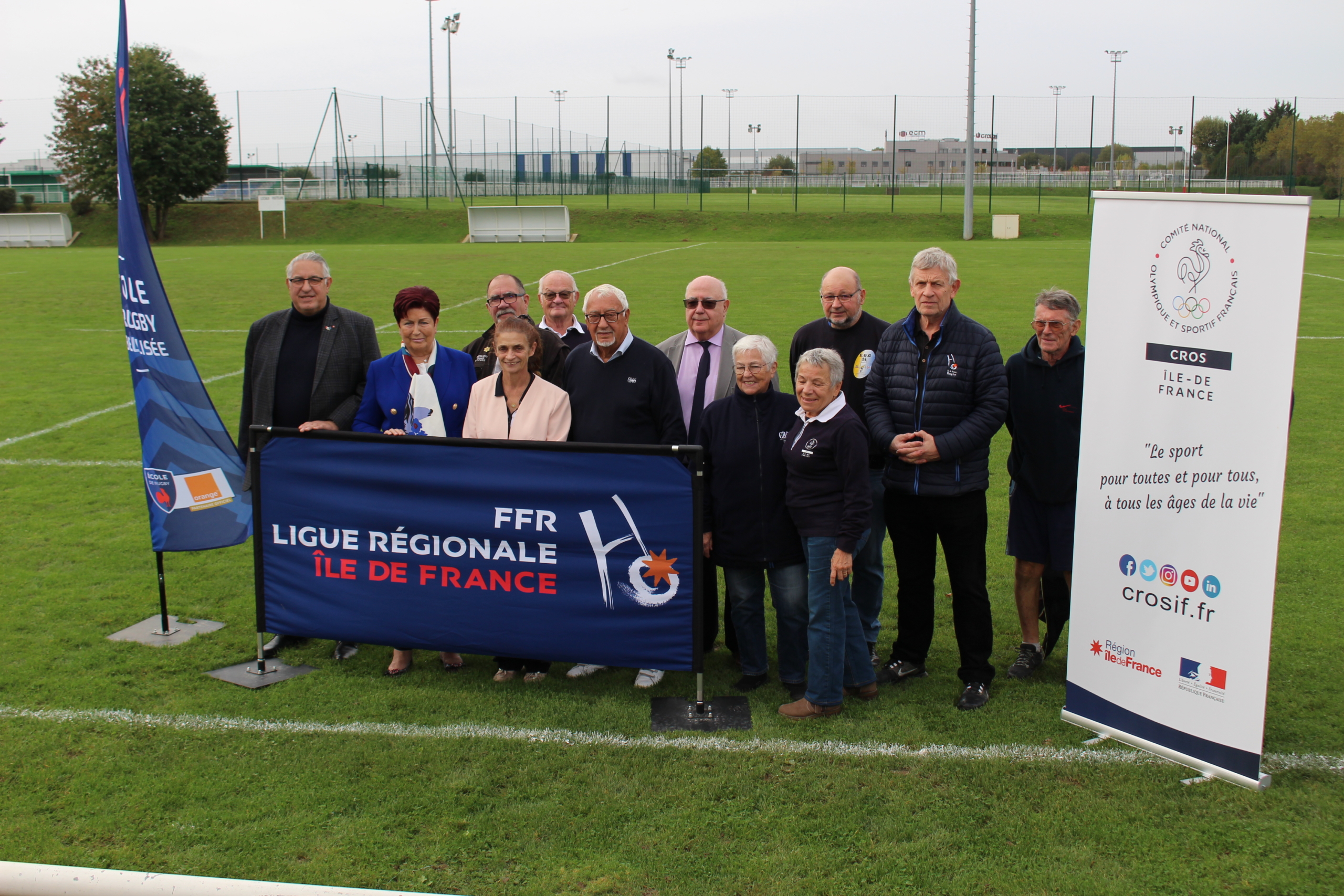 Lors de l’instant protocolaire le jeudi 23 octobre, la Présidente du CROS Île-de-France Evelyne Ciriegi était accompagnée du Président de la Ligue Île-de-France de Rugby Peter Macnaughton et membre du Bureau du CROS, Yanik Chevalier responsable de l’organisation, Pierre Grégoire Président du CDOS 95 et Michel Jomin Secrétaire Général, en présence de Madame Christiane Chevauché 1ère adjointe au Maire ainsi que de Monsieur Jean-Marc Lussot Adjoint en charge du Handicap et de l’Accessibilité.