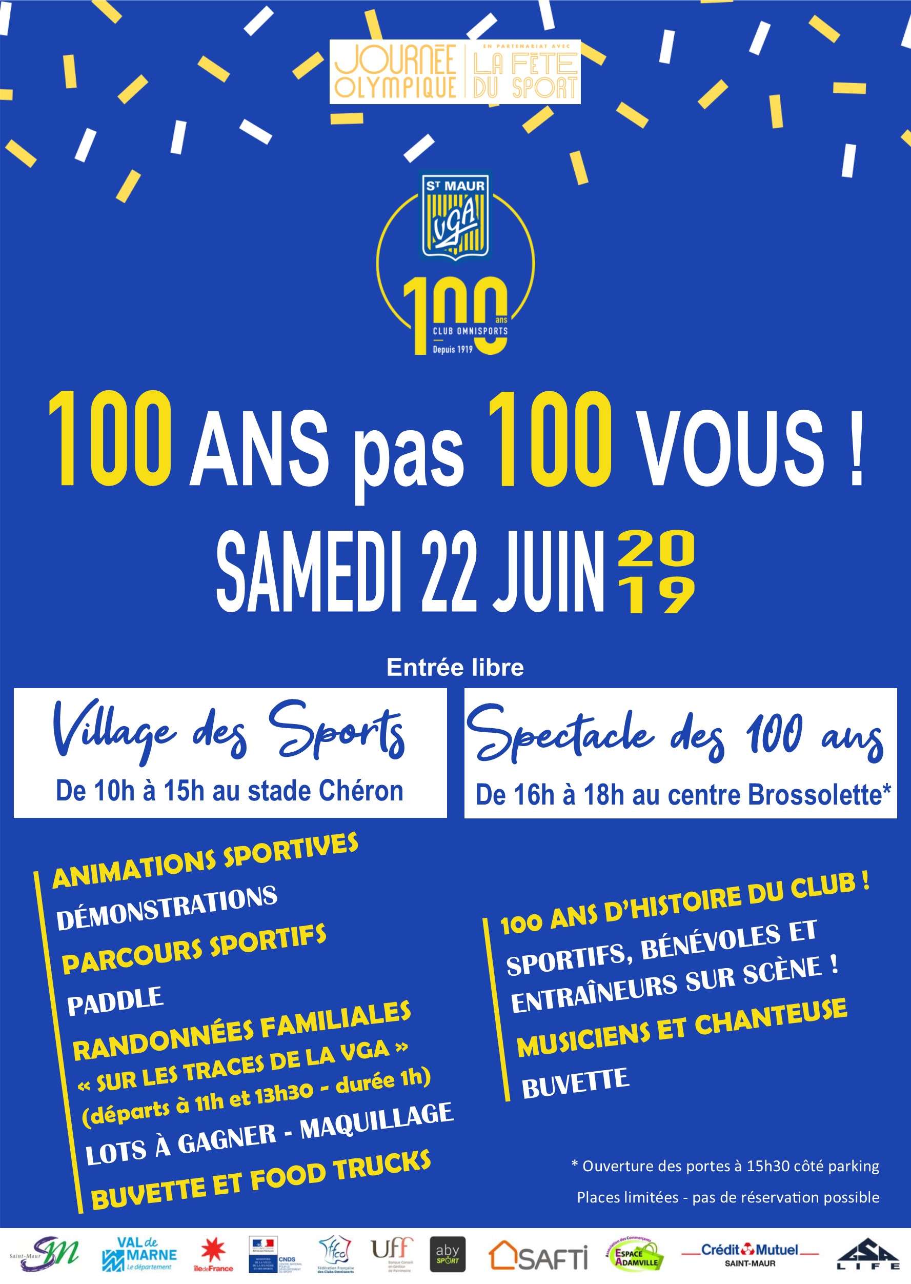 Dans le cadre de ses 100 ans la VGA Saint Maur est « labellisé » Journée Olympique – Fête du Sport par le ministère des Sports le samedi 22 juin 2019, avec au programme :