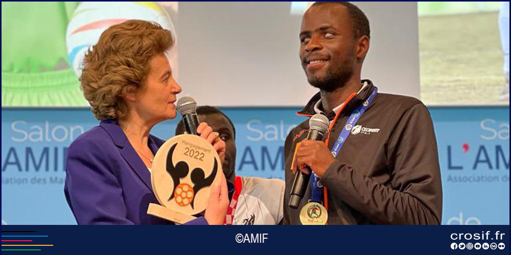 À l’occasion du Salon de l’Association des Maires d’Île-de-France qui se tenait les 28 et 29 juin, Yvan Wouandji s’est vu récompensé par Orange Île-de-France du trophée de l’Hangagement pour son œuvre au quotidien pour l’inclusion des personnes en situation de handicap grâce au sport, aux côtés de Sofia Nabet, Championne de France de boxe professionnelle et ambassadrice Sentez-Vous Sport 2022 du CROS Île-de-France et Charles-Antoine Kouakou, sacré champion paralympique du 400m T20 à Tokyo.